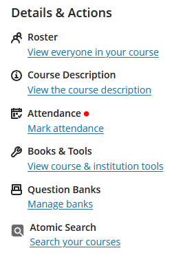 Access each course in Blackboard by clicking on the course link (see Setting Up JBU Online Attendance Monitoring procedure)