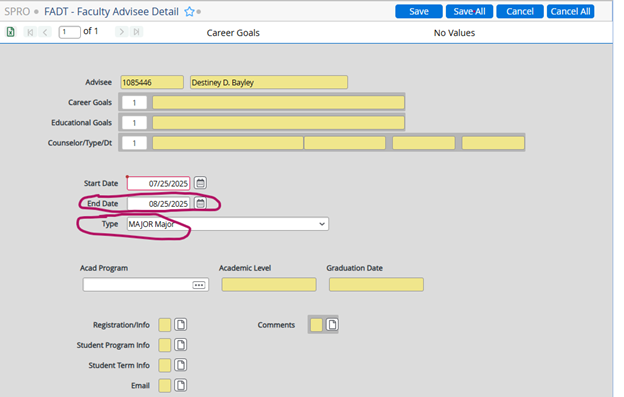 - Select “Save All” at the top of the screen, unless a previous address needs to be changed to “former” status.