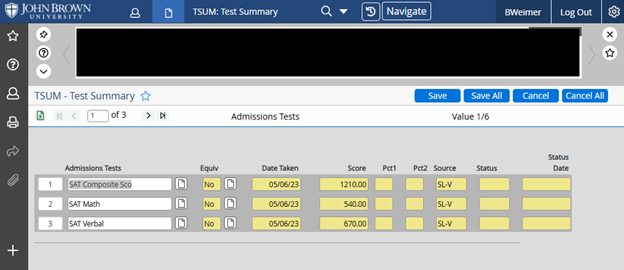 Enter the student name in Slate. Determine if they are TUG, GRAD, or Online. Grad and Online transcripts will go to the Associate Registrar for Graduate and Online Studies. If the student is a TUG student, and they are new, scan the transcript and email to systems@jbu.edu. If the student is a TUG student, and they are currently enrolled at JBU, scan the transcript, save in Slate, and put it in the New bin to be evaluated.